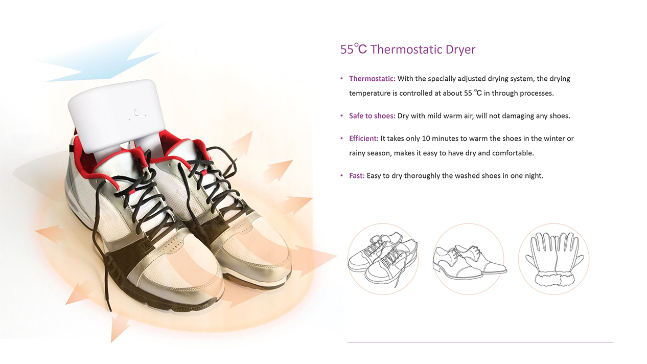 Warms shoes in just 10 minutes, and thoroughly dries wet or freshly washed shoes overnight.